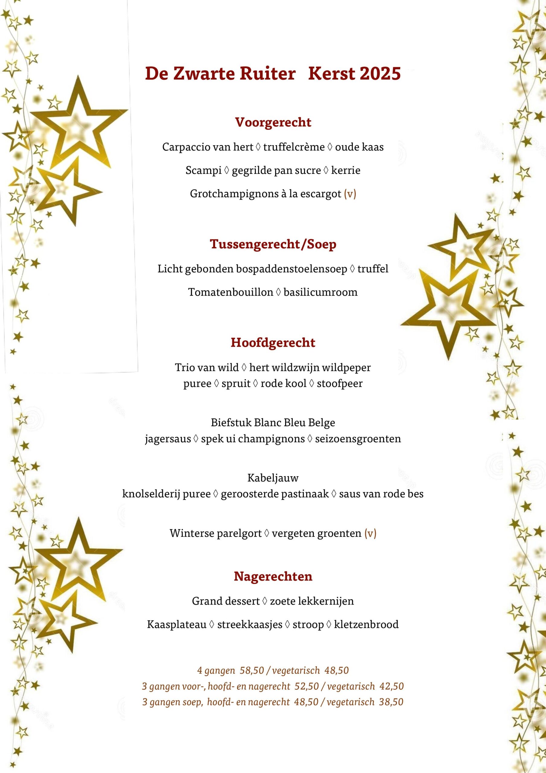 Woensdag 24 december open tot 17.00 uur. We serveren alleen lunchkaart gerechten. Kerstavond gesloten.