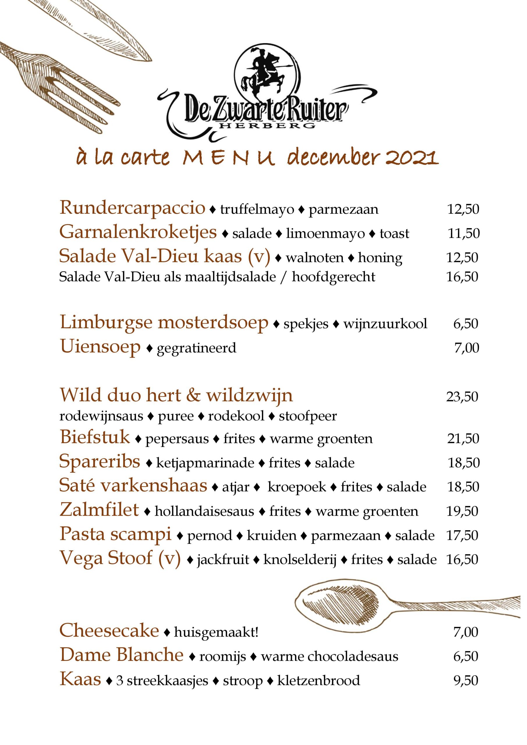 De Zwarte Ruiter beschikt over 8 kamers, geïnspireerd op de traditionele herberg uit de tijd dat men nog met paard en wagen reisde en waar je kon eten, drinken en overnachten. Die sfeer van vroeger combineren we met het comfort van vandaag. We bieden overnachtingen inclusief ontbijt, lunch en diner.